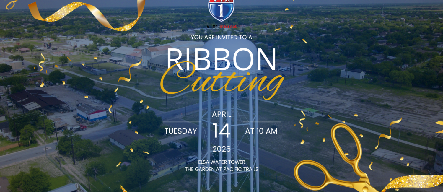 To celebrate this milestone, the City of Elsa and VTX1 Internet will host a ribbon-cutting ceremony on Tuesday, April 14 at 10:00 AM at the Elsa Water Tower. Community members, local leaders, and partners are invited to attend.
